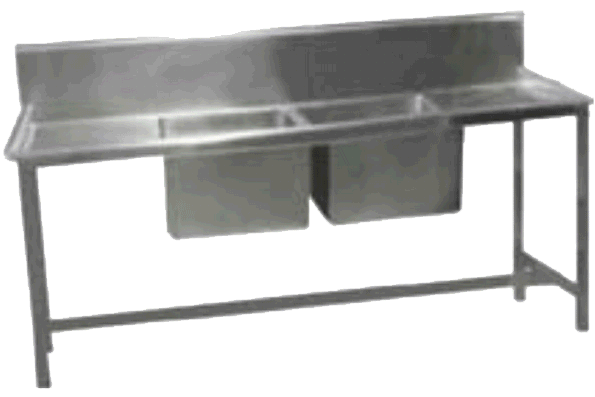 LAVADEROS - Mod. IFCL-90 Sólida estructura en acero mate inoxidable, realizada con tubos redondos soldados entre si con procedimiento TIG, con tablero de chapa reforzada y soportada en la parte inferior.