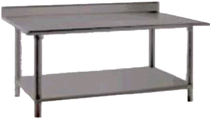 MESAS DE TRABAJO - Mod. IFCMT-90 Sólida estructura en acero mate inoxidable, realizada con tubos redondos soldados entre si con procedimiento TIG, con tablero de chapa reforzada y soportada en la parte inferior.