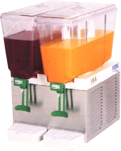 DESPENSADORES DE BEBIDAS Dispensadores de bebidas de 2 tolvas acrílicas de policarbonato. Termostato regulable de temperatura. Gabinete en acero inoxidable. Voltaje de 110v/220v. Refrigerante r-134.